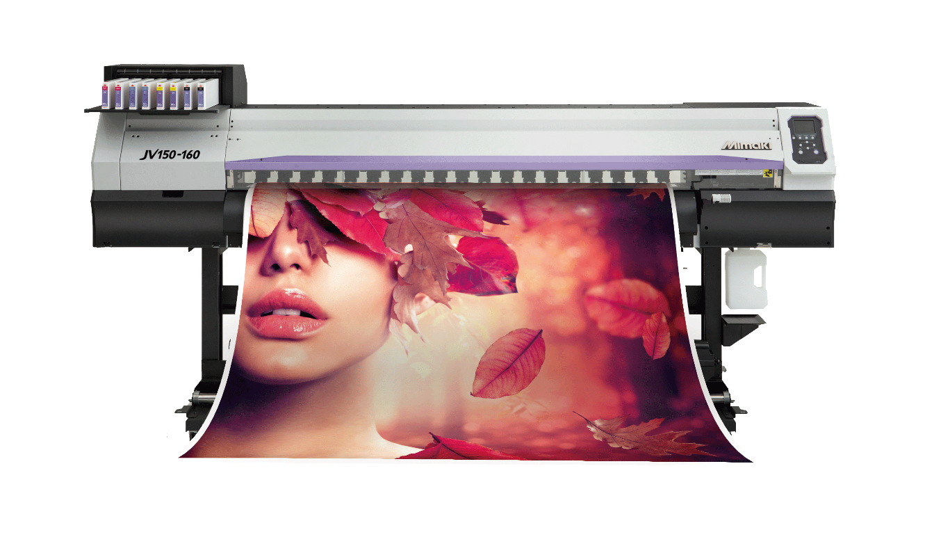 La Impresora JV150 Series de Mimaki proporciona un alto rendimiento, creatividad y versatilidad con tipos de tinta vibrantes, incluyendo las nuevas Naranja y Negro claro, en un paquete rentable para rotulistas, profesionales